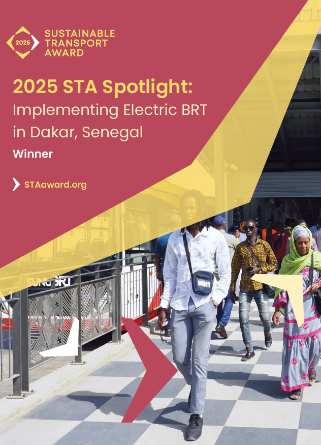 This STA Spotlight case study on Dakar, Senegal, the 2025 Sustainable Transport Award (STA) winner, highlights the city’s collaborative efforts to plan, build, and invest in public transport centered on zero-emission buses. In particular, Dakar launched its landmark all-electric BRT system in 2024 which spans over 18 kilometers, 23 stations, and hosts a fleet of more than 120 articulated all-electric buses. High-quality rapid transit systems, when combined with transit-oriented land use policies and electric vehicles, can offer cities crucial climate, economic, and social benefits. Dakar’s BRT is expected to serve 300,000 passengers a day and reduce journey times from 95 to 45 minutes, leading to significant time savings for users. In addition, the system is expected to help mitigate over 53,000 tonnes of CO2 emissions per year with the all-electric fleet.